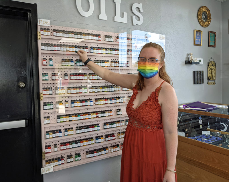 A few minutes after our conversation, I saw Mikayla work her magic. She was standing in front of a case of essential oils, helping a customer find the oil she needed. As Mikayla snapped her fingers in front of the case, she explained:
