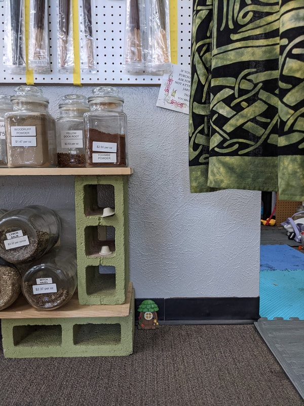 The shop has three tiny doors for the small fairies, because they don’t like to use adult doors.